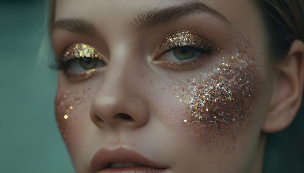 - Maquillaje: Crea looks de fiesta llamativos y originales utilizando brillantina ecológica en los ojos, pómulos o labios.