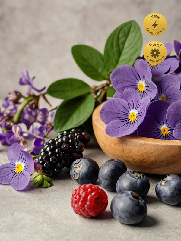 Imagina un paseo por un jardín florido, donde las violetas florecen en todo su esplendor. Violeta te envuelve en esa atmósfera encantadora con sus notas florales y frutales.